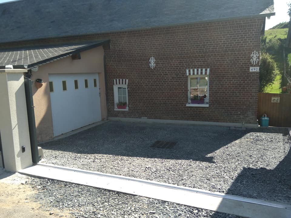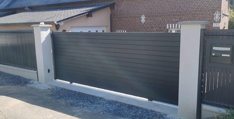 Nous avons posé un portail coulissant, qui est motorisé grâce à un moteur Somfy.